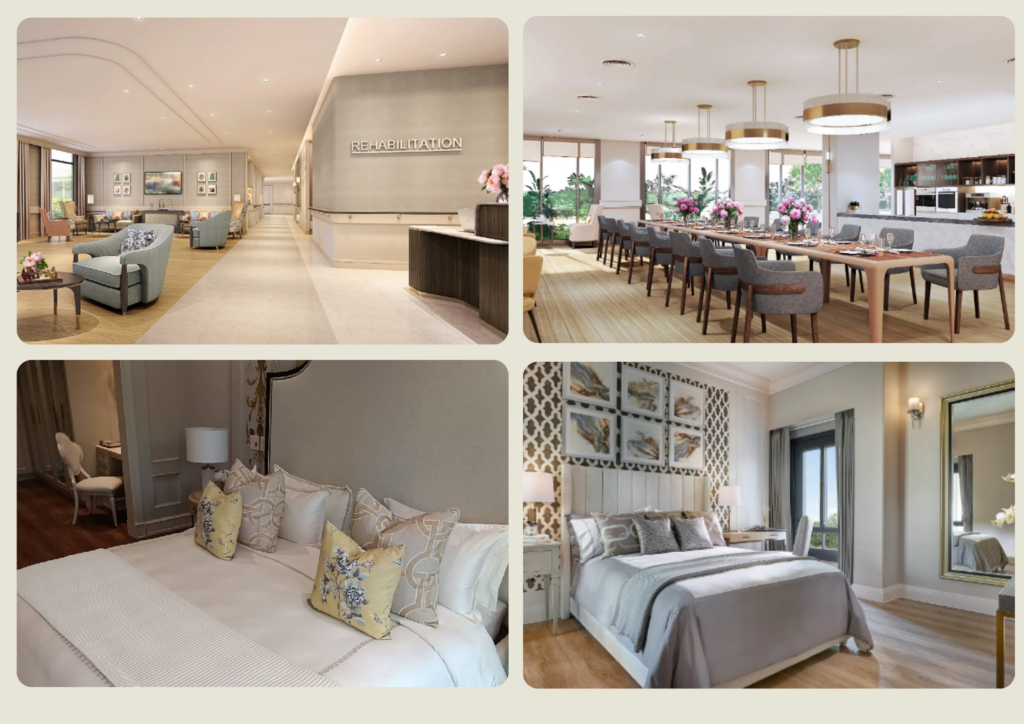 Environment: Private rooms designed like high-end apartments with rich social spaces and aging-in-place features.